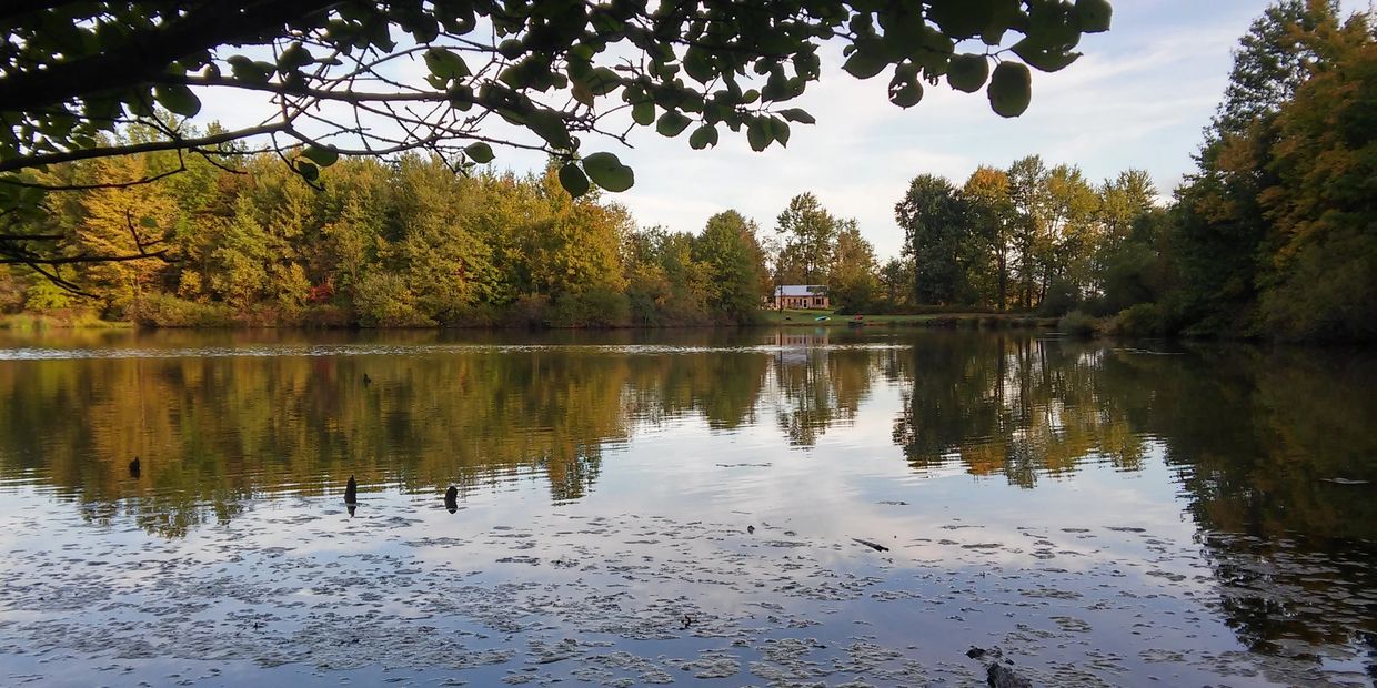 When we got here, they were having an open house. The buildings were totally unimpressive. The house reeked of cat smell, the front porch was falling down, one wall on the old barn was falling off the foundation, another building was sway backed and ready to fall. But this older guy, named Jim Rhodes was there and loved to tell stories. He and the realtor kept talking about the lake where the neighbors would skate in the winter and fish in the summer, so I said "Let's go and see it." We drove through weeds higher than the truck for about a mile and ended up at the beautiful lake on the property. They had actually mowed the grass across the dam. You could see maple trees all around the lake. Rhodes told about the beavers that had created the lake in the beginning and you could still see beaver evidence in tree stumps in the woods. He told about Jenifer, the owner who had rebuilt the dam enlarging the lake somewhat because she really loved the lake.